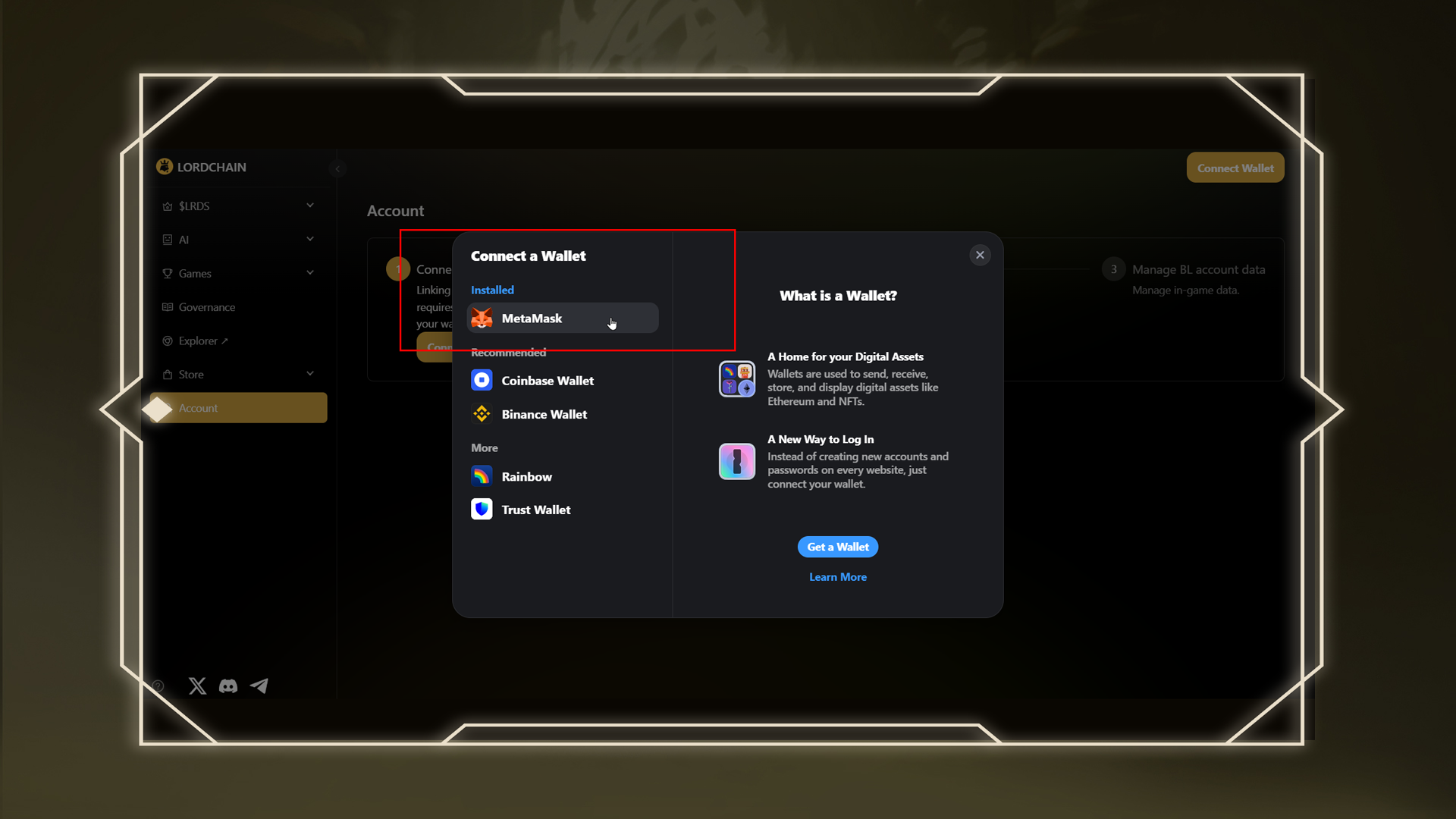 ### 🪪 Step 1: Link Your Wallet to LORDCHAIN