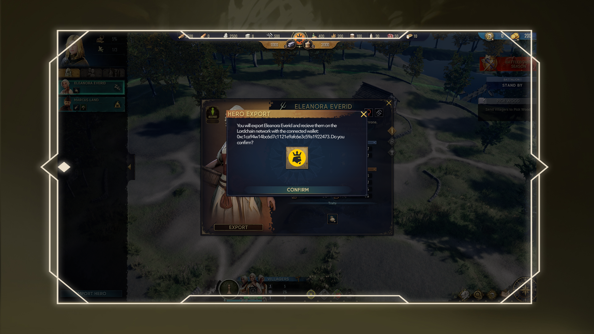 You’ll be prompted to confirm the LORDCHAIN wallet address where the hero will be sent.\