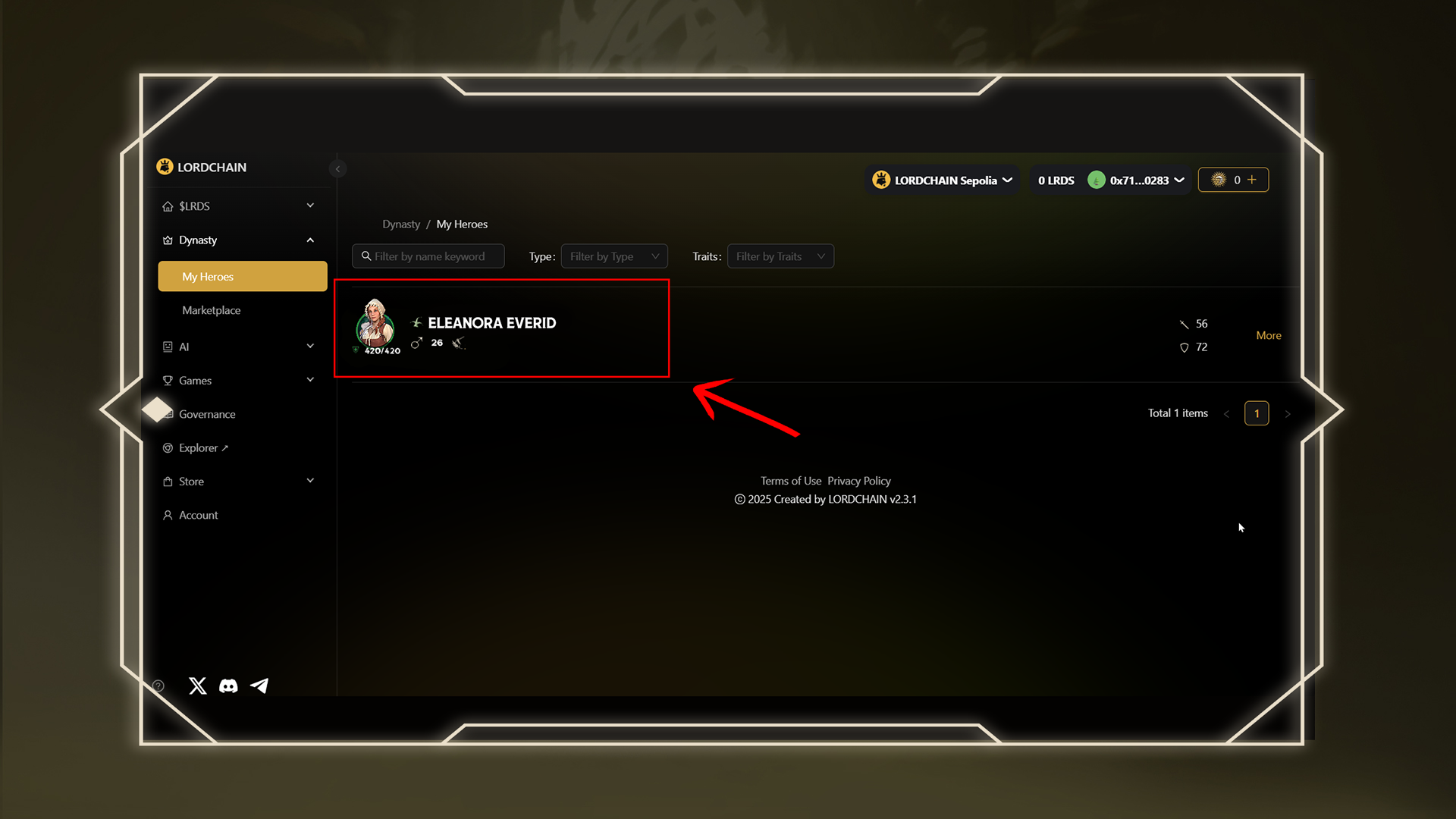 ### 👑 Step 5: View Your Hero on LORDCHAIN