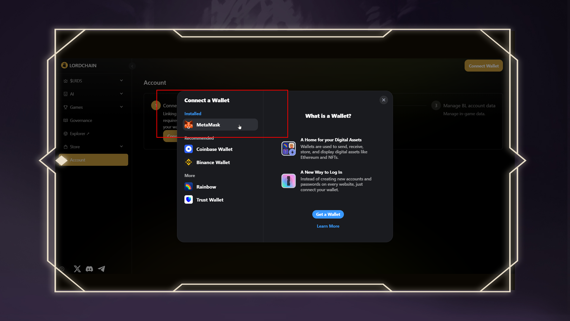 ### 🪪 Step 1: Link Your Wallet to LORDCHAIN