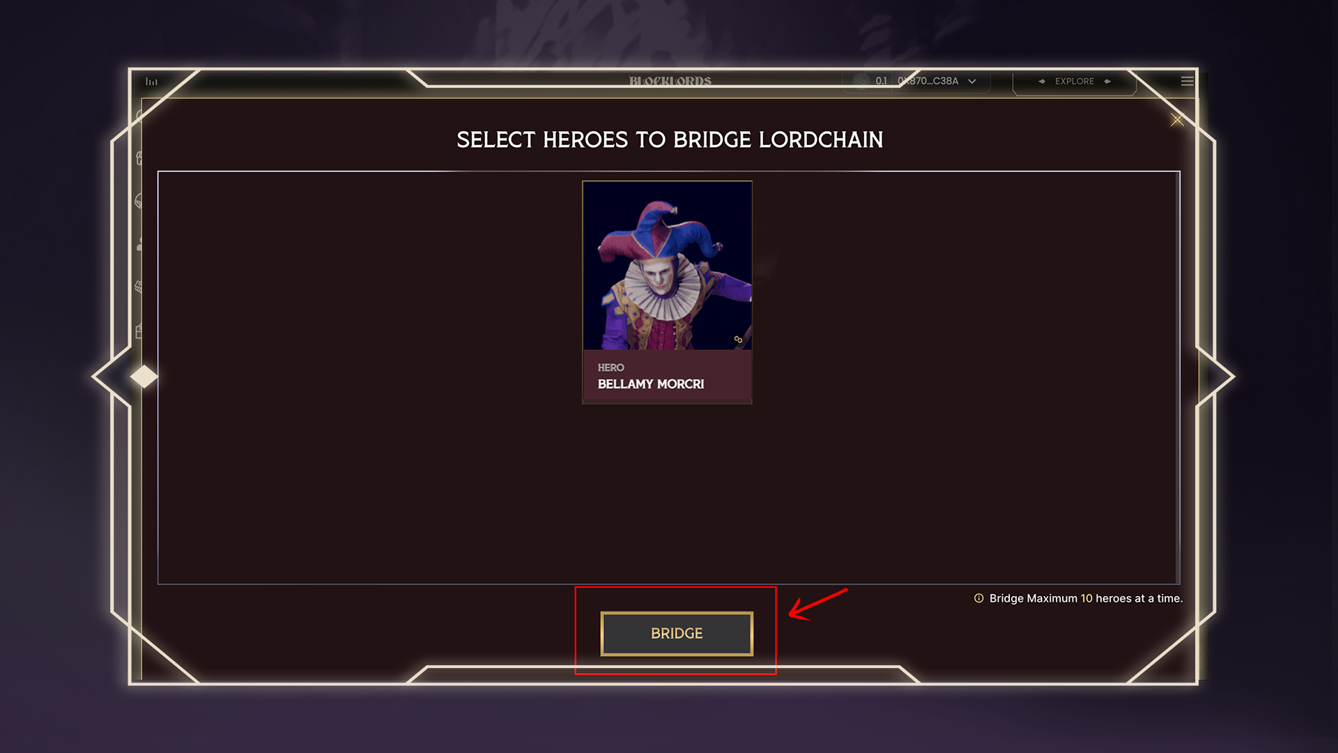 This will be the destination wallet for your bridged hero.