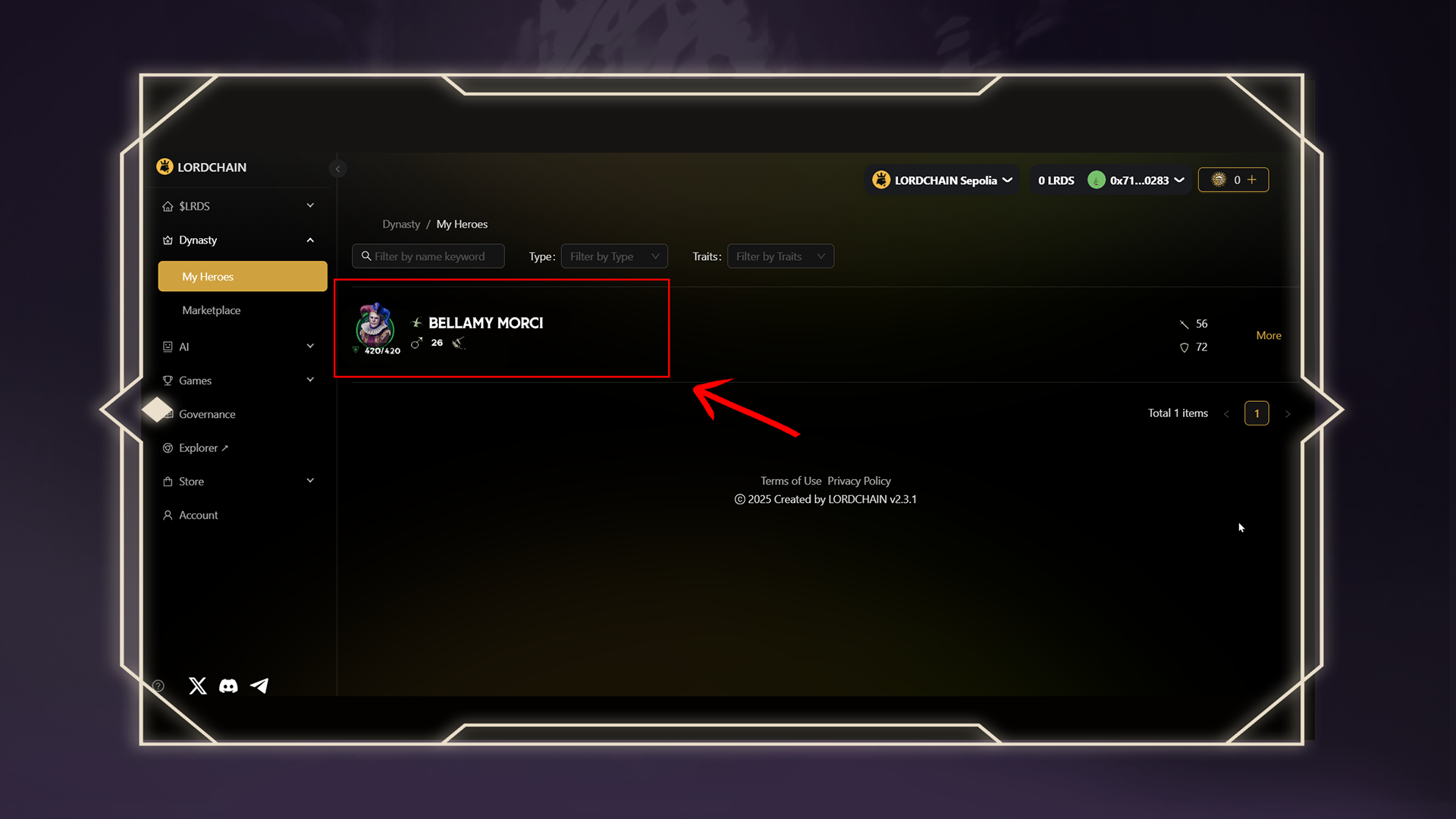 ### 👑 Step 6: Check Your Hero on LORDCHAIN
